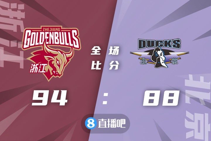 1月18日讯 CBA常规赛第二阶段进入尾声,浙江对阵北京,浙江目前23胜4负高居积分榜榜首,而北京最近状态不佳,3连败后17胜10负排在第6位。上半场双方命中率并不是很高,浙江队吴前手感不佳,但好在其余队友能给予进攻端的帮助,而北京队更是不在状态,首节只拿到16分,次节依靠约翰逊的强打北京一度反超比分,但浙江迅速调整,多点开花都能得分还是稳住领先。下半场,双方进攻端终于有起色,方硕、曾凡博联手翟晓川砍下18分帮助北京直接追平比分,随后双方命中率又有回落,但是展开胶着拉锯战,浙江通过外线三分重新反超并拉开比分,吴前连续失误又给北京机会,好在摩西-赖特关键抛投打进后又快下暴扣锁定胜局,最终浙江94-88力克北京,拿到3连胜的同时送对手4连败。