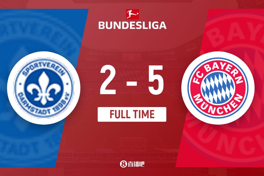 下半场伤停补时8分钟,全场比赛结束,最终拜仁5-2达姆施塔特。