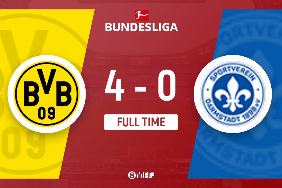 全场比赛结束,多特4-0大胜达姆施塔特。