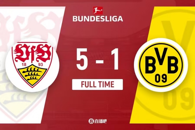 全场比赛结束,多特蒙德1-5斯图加特。