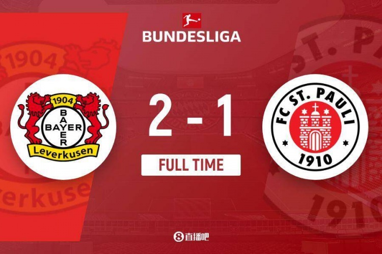 全场比赛结束,勒沃库森2-1圣保利。