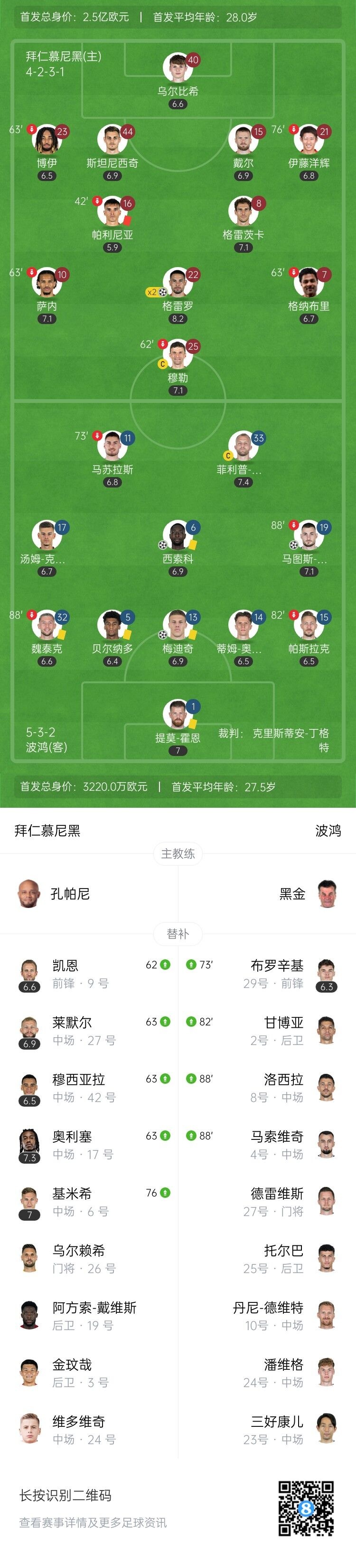 第68分钟,刚换上场的4名拜仁主力打出配合,莱默尔弧线球兜远角被霍恩奋力化解。↓