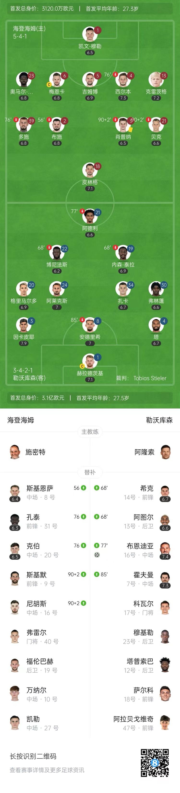 第86分钟,霍夫曼禁区线附近推射被门将抱住,勒沃库森本场首次射正。↓