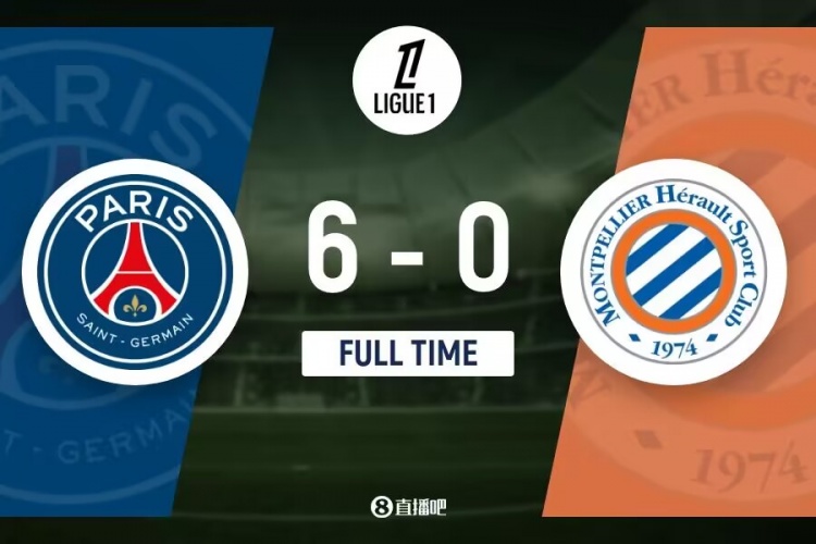 下半场补时6分钟。最终全场比赛结束,巴黎6-0蒙彼利埃。