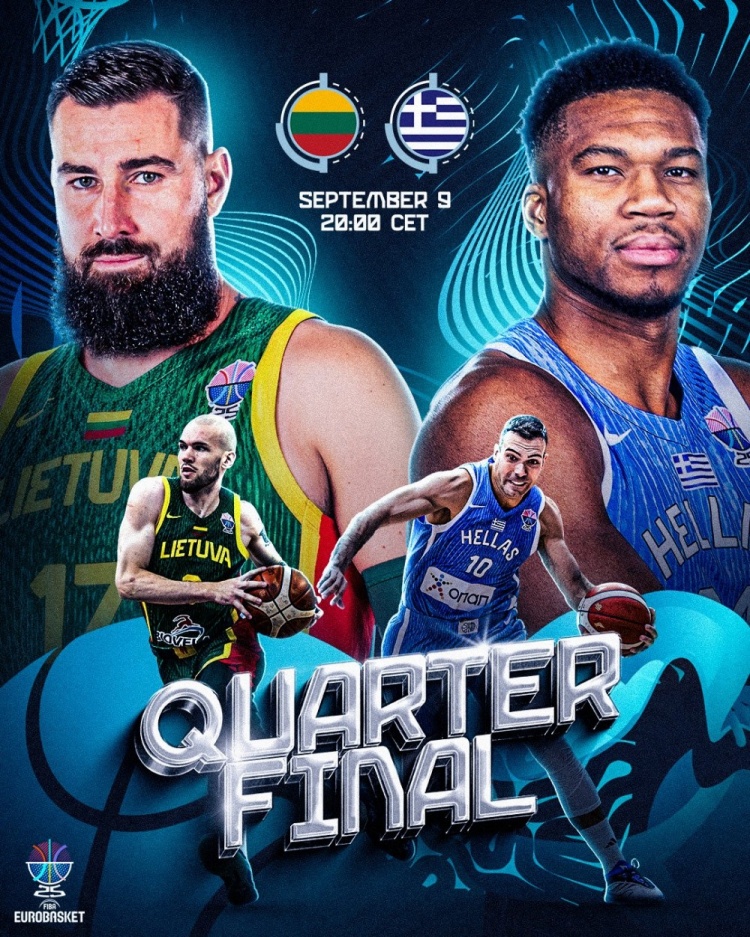 比赛开始,立陶宛率先发力打出7-0的开局,字母哥挺身而出,连续暴扣得手独得6分率队迅速反超,此后双方展开对攻,比分始终紧咬,次节希腊外线开火连中三分获得两位数优势,瓦兰传射建功率队打出11-2迫近比分,字母哥强攻稳住局势,半场战罢希腊44-38领先立陶宛。易边再战,立陶宛进攻端办法不多,希腊多点开花再度获得两位数优势,末节希腊牢牢占据场上主动,字母哥连投带罚拿到5分扩大优势,立陶宛苦苦追赶无果。最终,希腊87-76击败立陶宛,挺进四强。