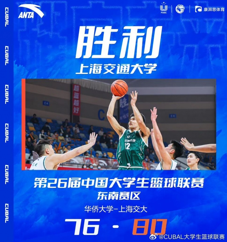 加时赛双方的对抗更加激烈,都是依靠罚球拿到分数,不过上海交大的造杀伤能力明显更强并取得领先,紧要关头两队都出现失误,郑晓钢的反超三分不中,上海交大关键两罚全中杀死比赛,最终上海交大加时80-76战胜华侨大学。