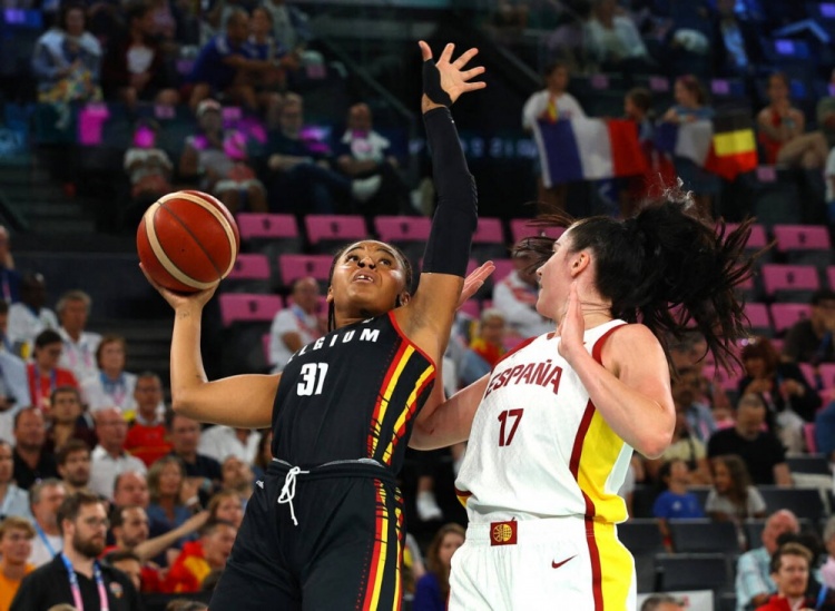 比赛上来,比利时队就率先进入状态打出8-2的开局取得领先,不过她们在首节的最后一分半时间里没有再得分,西班牙队抓住机会连拿7分抹平分差,到了次节西班牙队的进攻出现问题,她们单节只拿到11分,半场结束时比利时队领先11分;下半场回来,西班牙队依旧没有解决好进攻的问题,大半节的时间只拿到2分,比利时队趁势将分差扩大到二十分以上,末节比赛已经早早失去悬念,最终比利时队轻取西班牙队进入四强。