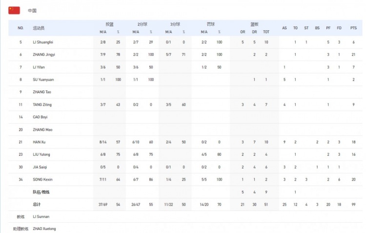 中国女篮数据: