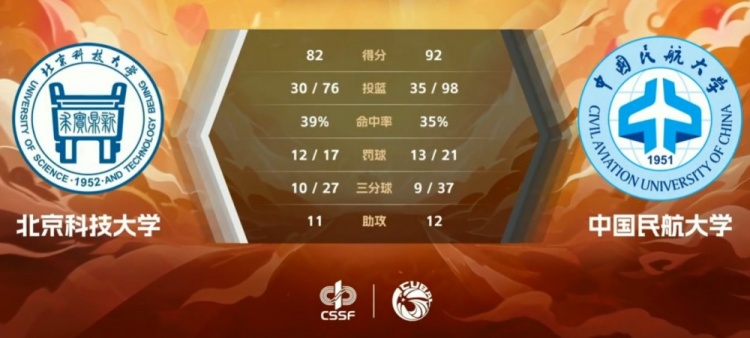 末节决胜中国民航积极拼抢多次拿到进攻篮板并转化得分,崔雍鑫状态火热再度拿分为球队拉开8分优势;随后拉锯战双方整体效率都不是很高,分差一直在8分附近徘徊拉锯,但手握领先的中国民航牢牢控制局面,末段杨驷骏再度命中三分,中国民航在进入读秒前取得10分领先奠定胜局。最终,中国民航大学击败北京科技大学拿下比赛。