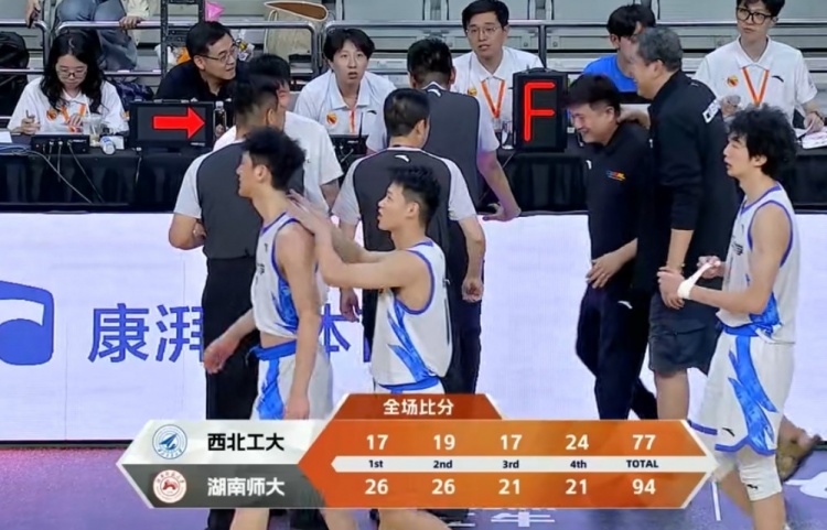 末节决战,任天祥连续扔进三分,刘俊希强打2+1,西北工大一波9-2小高潮迅速追近比分,常海鹏造杀伤紧急止血。随后薛金昆里突外投连砍8分再次稳住局势,湖南师大始终保持近20分领先。时间越来越少,西北工大无力回天,最终湖南师大94-77轻取西北工大。