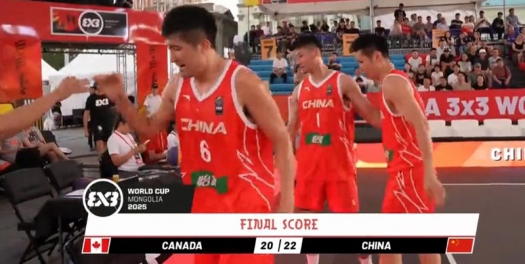 一开场,加拿大轮番冲击内线连续拿分,郭翰宇连中两球后张殿梁远投两分穿针,加拿大里突外投保持火力输出,郭翰宇高难度两分命中率队反超,双方势均力敌,比分始终紧咬,张殿梁奋力拼抢进攻篮板打成1+1,加拿大继续杀伤内线迅速回应,暂停过后吴星锐远投续上火力,张殿梁两罚全中后再中远投两分,相智超撤步两分一箭穿心完成绝杀。最终,中国三人男篮22-20力克加拿大,喜获两连胜。