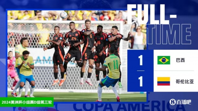 全场比赛结束,最终巴西1-1哥伦比亚。
