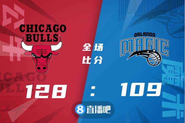 比赛上来,公牛就占据了场上的主动权并取得领先,分差也是逐渐拉开到了两位数,而首节手感不佳的魔术得分未能达到20分,次节双方的进攻都打开,但公牛显然手感更好,分差在半场结束时已经达到13分;进入下半场公牛一度将分差扩大到二十分以上,好在是魔术及时调整在第三节后半段有所追赶,虽然末节魔术一度将分差缩小回个位数,但公牛没有给他们反超的机会,最终公牛128-109轻取魔术结束连败。