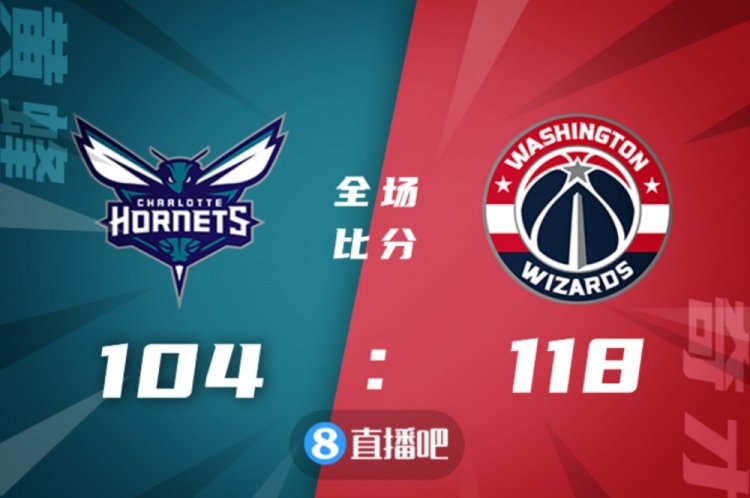 双方上来就展开对攻大战,赖特和比尔串联起球队,奇才全面皆兵,首发和替补都能得分,而黄蜂主要靠三球和罗齐尔、海沃德撑起进攻,次节以小史密斯为主的替补接连取分建立主动权,但阿夫迪亚手感不错,奇才打出13-2小高潮重新咬住比分。下半场,黄蜂突陷得分荒,波尔津吉斯手感终于回暖,单节爆砍18分直接帮助奇才拉开双位数领先,随后奇才继续发力将分差一度拉开至近20分,黄蜂回天乏术,最终奇才118-104轻取黄蜂,终止3连败的同时送对手5连败。