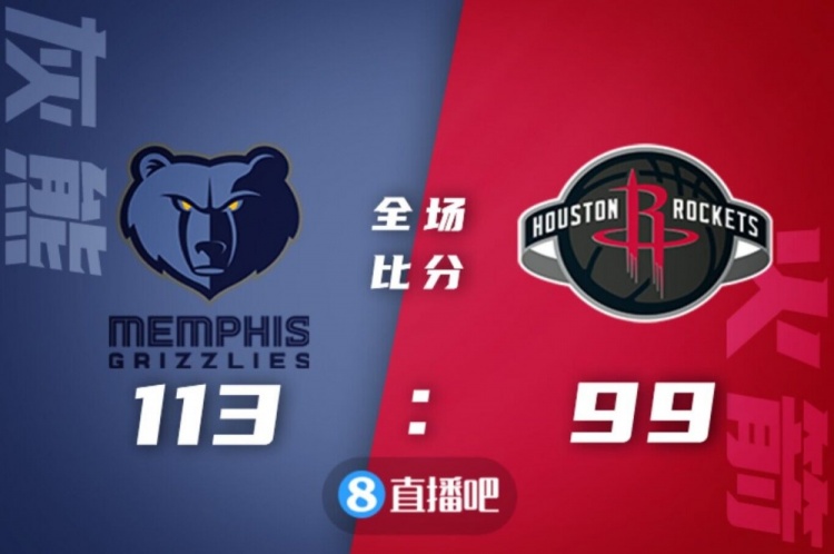 比赛开始,两队榜眼杰伦-格林和莫兰特展开对飙,灰熊稳扎稳打逐渐占据场上主动,火箭次节一波13-5完成反超,灰熊及时回暖,半场战罢火箭44-47落后三分。易边再战,火箭突然哑火,灰熊大举进攻取得两位数领先,火箭强攻内线苦苦支撑,但灰熊越战越勇不断扩大领先,火箭苦苦追赶无果。最终,火箭99-113不敌灰熊,遭遇11连败。