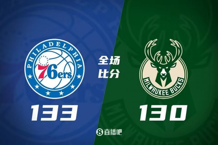 76人(41-22):哈登38分9板10助,恩比德31分6板10助,马克西26分3板,哈里斯3分2板伤退,塔克2分2板,尼昂16分,梅尔顿5分2板,麦克丹尼尔斯8分2板,里德4分4板。