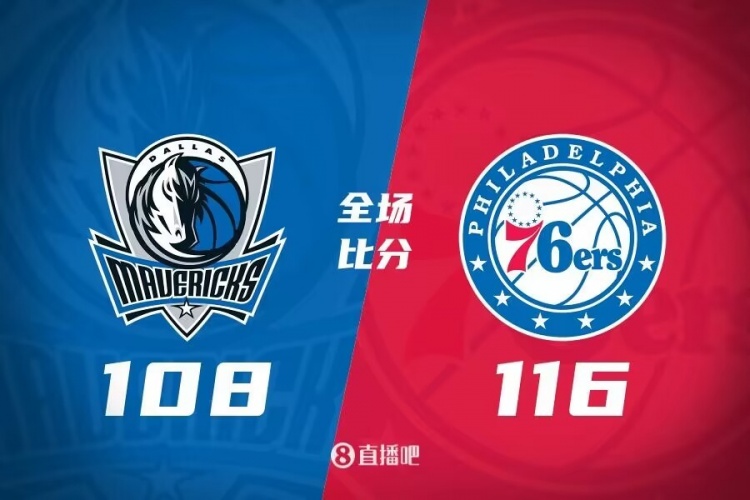 比赛开始,欧文手感火热单节得分上双,东契奇主要负责串联,替补多点开花帮助独行侠迅速建立主动权并一度领先到双位数,恩比德独自撑起76人进攻显得很被动,哈登手感冰凉,随后哈登和马克西带领76人咬住比分,半场只落后5分。下半场,双方展开胶着拉锯战,东欧组合继续扛起进攻,而76人则是靠马克西单节砍下10分维持分差,三节结束独行侠领先2分。末节独行侠投射失准,76人稳扎稳打完成反超,并在最后一分钟领先到7分,独行侠无力再抹平分差,最终76人116-108逆转战胜独行侠,终结三连败。