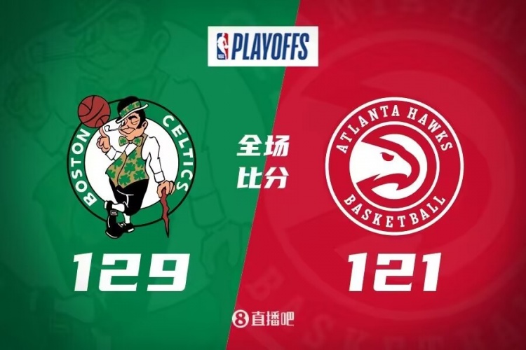 比赛开局,凯尔特人一扫上一场输球阴霾,率先发力,连续杀伤禁区,建立10分的领先优势,次节两队陷入拉锯战,交替取分,分差始终在个位数到两位数之间浮动,半场结束绿军65-53领先。易边再战,凯尔特人进攻效率下降,老鹰抓住机会趁机蚕食分差,三节结束仅落后5分。末节凯尔特人找到进攻状态,重新建立领先,特雷-杨单节砍下18分,但独木难支,绿军多点开花,比赛逐渐失去悬念,最终凯尔特人129-121力克老鹰,大比分3-1取得赛点。