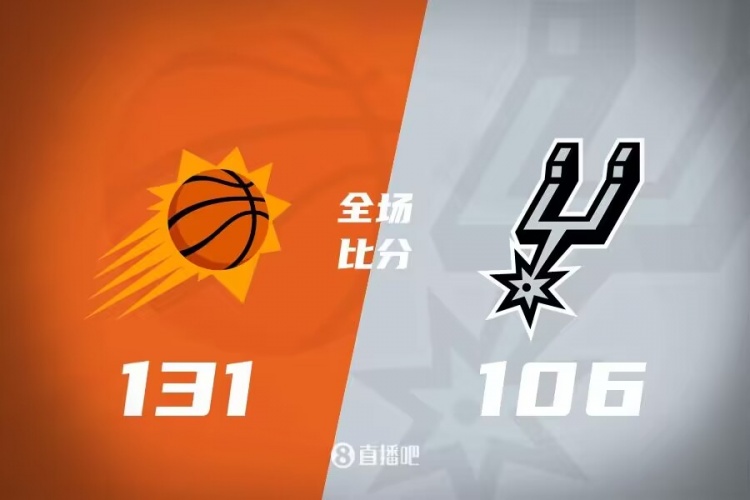 此役一上来太阳早早找到状态,布克火力全开单节贡献12分,杜兰特和阿伦续上火力,马刺进攻滞涩单节仅得到17分,太阳连续打出小高潮拉开比分,首节结束时太阳确立9分优势,次节回来,马刺进攻回暖,文班联手特雷-琼斯率队追分,但杜兰特突然发力连续打进,太阳多点开花牢牢占优,半场战罢,太阳已经领先18分。短暂休整后太阳火力不减,布克和杜兰特予取予求轮番取分,双方分差越拉越大,三节结束后太阳已经领先32分,末节上来,两队早早换上替补阵容,马刺进攻乏力追分无望,比赛提前失去悬念,最终太阳131-106大胜对手迎来三连胜,同时送给马刺三连败。