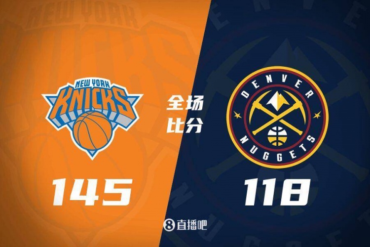比赛开始,双方上来你来我往迅速进入状态,阿努诺比接连三分命中,布伦森里突外投连砍9分,尼克斯首节就领先到12分,次节唐斯接连3记三分砍下11分,尼克斯瞬间拉开20分以上领先,随后佩恩又里突外投成为替补奇兵,小波特单节15分苦苦支撑,尼克斯超高命中率半场领先到23分。下半场,掘金全民皆兵开始追分,但尼克斯根本挡不住,布伦森单节9助攻,阿努诺比怒轰17分,尼克斯三节轰下113分继续领先26分,末节掘金已经换上替补练兵,威少发力单节爆砍24分,无奈分差过大,尼克斯还是依靠主力保持20分左右领先,最终尼克斯145-118大胜掘金,145分也是本赛季联盟单场最高分。