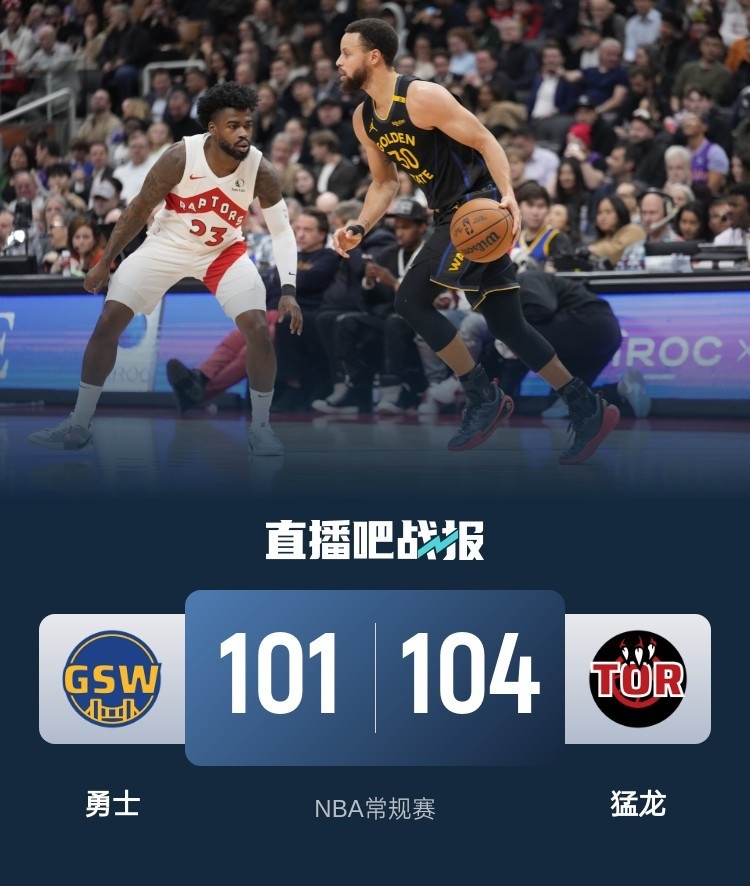 比赛上来,两队就打得很胶着,场上多次出现平分,在10-10平后勇士连拿五分,但猛龙立马就用6-0给出回应,分差一直无法拉开,次节两队依旧是打得难解难分,库里是队内唯一得分上双的球员,半场结束时猛龙领先2分;下半场回来,勇士完成反超并有拉开分差的势头,但是他们的失误让猛龙总能及时追回来,比赛悬念保持到了最后,关键时刻阿巴基反击扣空篮,维金斯三分不中,希尔德绝平三分不沾筐,最终猛龙险胜勇士止住五连败。