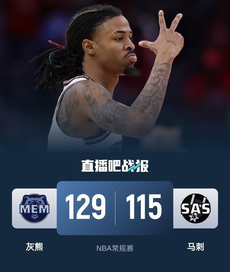 此役一上来马刺稍显慢热,莫兰特联手伊迪率队占优,凯尔登-约翰逊及时发力稳住局势,文班防守端接连送出大帽,马刺稳扎稳打后来居上,首节结束时马刺领先2分,次节回来,灰熊进攻陷入停滞,肯纳德连中三分短暂止血,马刺抓住机会不断扩大优势,半场战罢,马刺已经领先12分。易边再战后灰熊找回进攻节奏,多点开花的他们单节狂轰43分,三节结束后灰熊反超6分,末节上来,马刺一度将分差缩小至1分,但灰熊迅速回敬18-3制胜攻击波,决胜时刻马刺进攻发力回天乏术,最终灰熊129-115击败对手。