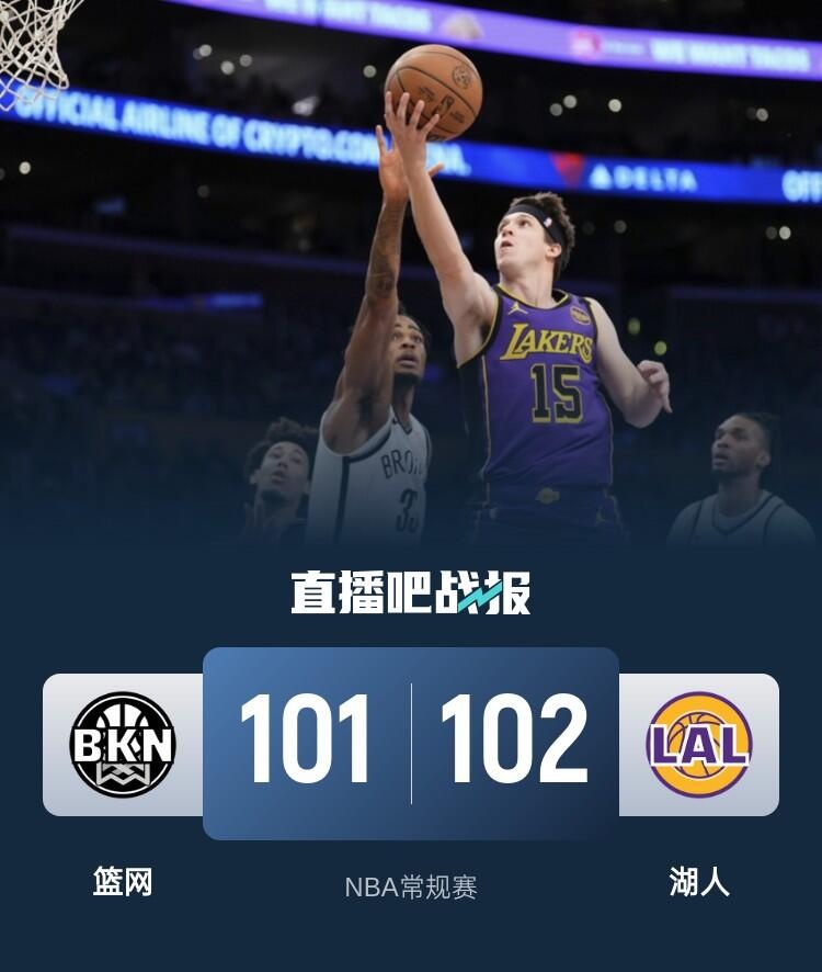 湖人开局面对连续客场作战且上一场狂输快船59分的篮网却占不到任何便宜,开局他们甚至一直被动追分仅短暂取得过一次比分领先;次节开局篮网送上6-0的攻势拉开比分,不过詹姆斯也在随后站出来连续拿分为湖人止血;末段湖人才逐渐进入状态送出15-5的攻势拉开10分优势,但随后2分钟又莫名其妙哑火被篮网追至6分进入下半场。休息归来场面依旧,湖人虽然大部分时间保持领先但优势很小,末节对决湖人甚至还被对手反超,不过最后时刻里夫斯站出来连拿关键7分帮助球队控制局面,篮网最后时刻仍然有机会绝杀,不过拉塞尔最后绝杀三分不中。最终,湖人力克篮网拿下比赛。