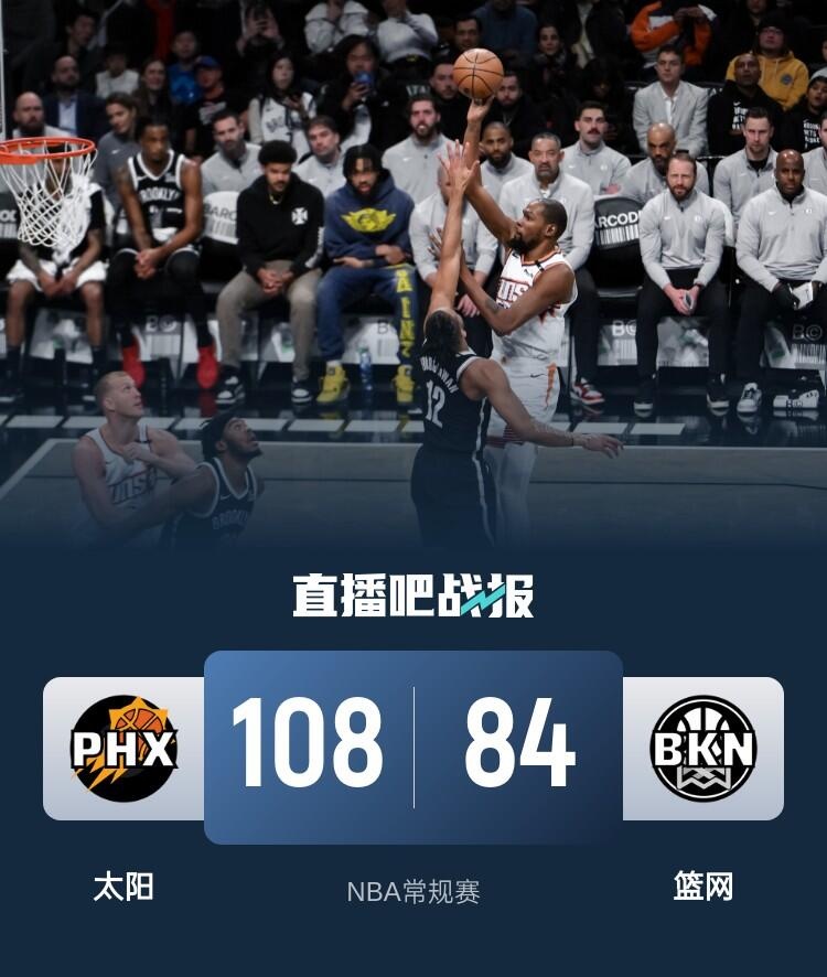 首节之争篮网面对自家篮筐迟迟找不到准心,比赛过去接近6分钟的情况下他们仅拿到3分;太阳则笑纳大礼接管比赛并迎来20-7的攻势早早拉开两位数领先;次节篮网虽然找回状态和对手对攻但这一节也只是持平状态,太阳凭借首节建立起的优势带着12分领先进入下半场。休息归来场面依旧,太阳虽然无法继续扩大优势但一直维持着上半场确立起的两位数领先,末节篮网的熄火让比赛失去悬念,太阳也以16-8的攻势将分差拉大至20分以上锁定胜局。最终,太阳客场轻取篮网拿下比赛。