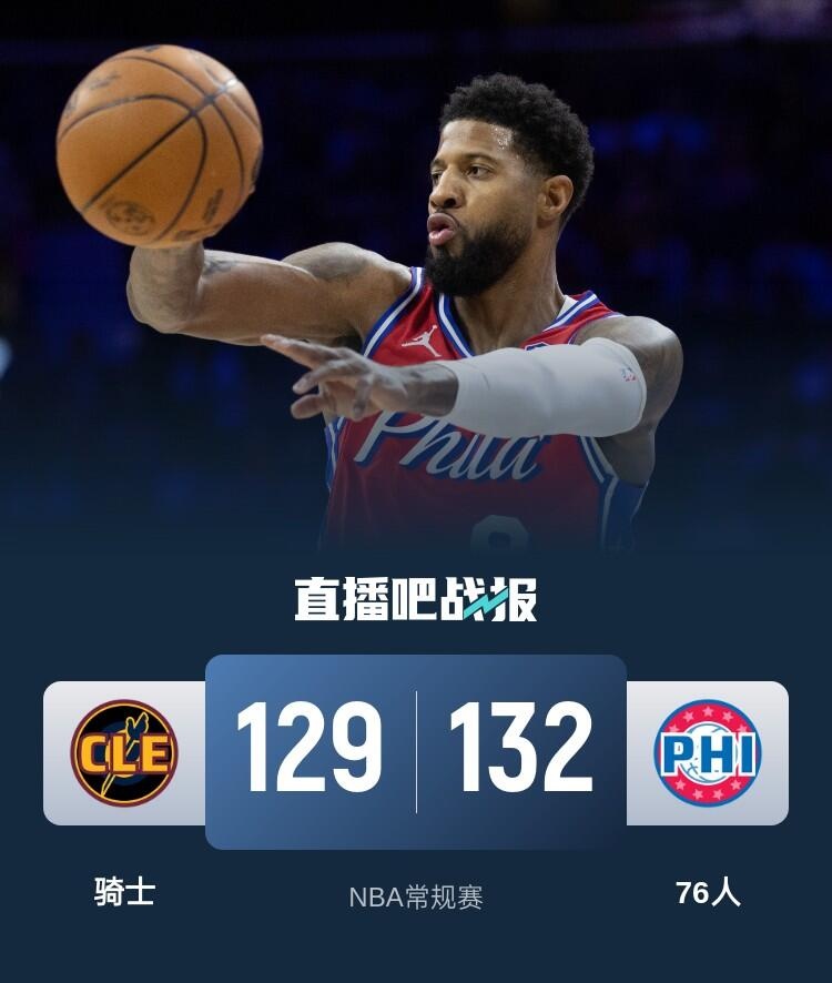 首节之争双方打出高效率的进攻大战,76人面对联盟进攻效率最好的球队一点不怵,最后时刻他们以一波9-0顺利抢占主动;次节双方延续对攻状态,这一节76人表现中规中矩不如首节强势,而骑士以3记三分开局,并在末段用一波7-2的小高潮反超3分进入下半场。休息归来双方依旧都无法阻止对手,不过这一次76人在一度落后8分的情况下送上一波17-8的攻势扭转局面。末节决战双方状态火热,骑士开局弹无虚发并在节中连飙三记三分抢占主动权,然而随后他们遭遇黑色3分钟,76人则抓住机会回敬三记三分送上一波13-0的攻势扭转局势,骑士在这之后虽然疯狂追至3分但关键球权失误葬送机会。最终,76人主场以132-129力克骑士结束7连败,这场败仗是骑士赛季第二次连败,也是最近7场比赛里的第4场败仗。
