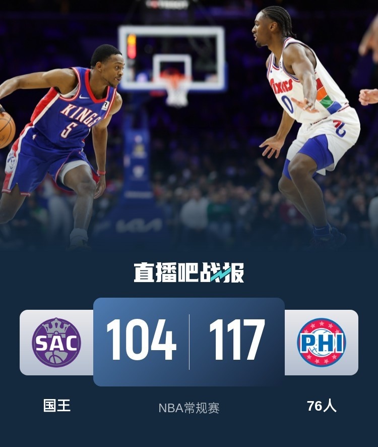 76人(19-27):马克西30分4板8助、乌布雷15分6板3助4断、埃里克-戈登14分1板2助2断、洛瑞13分5板8助、康西尔13分1板、亚布塞莱9分6板3助、雷吉9分4板2助、爱德华兹9分1板3助、博纳5分7板1助