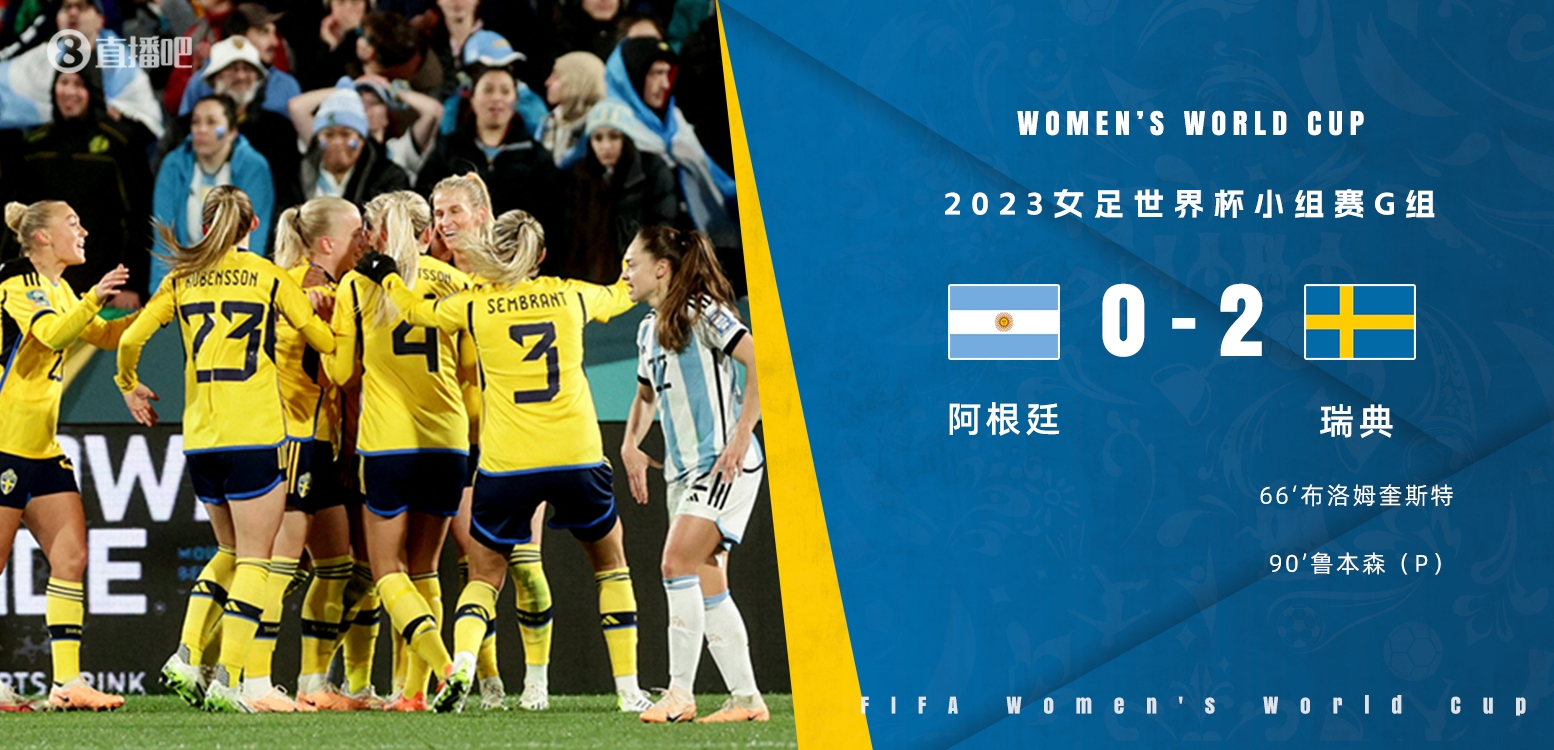 8月2日讯 北京时间8月2日15:00,女足世界杯小组赛G组第三轮阿根廷迎战瑞典的比赛,上半场双方互有攻守,斯科格头球造险,邦塞贡多伤退,半场结束,阿根廷女足0-0瑞典女足。下半场布洛姆奎斯特头球破僵,鲁本松点射奠定胜局,最终瑞典女足2-0阿根廷女足小组第一出线将战美国,阿根廷垫底出局。