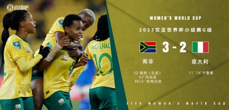 8月2日讯 北京时间 8月2日15点,女足世界杯小组赛G组第三轮意大利对阵南非。上半场,贝卡里造点,卡鲁索点射破门,加特拉娜怒射中柱,奥西回传直接送入自家球门,贝卡里头球也击中一次立柱,下半场,马加亚破门将比分反超,卡鲁索再入一球,贾钦蒂错失单刀,加特拉娜补时绝杀。全场比赛结束,意大利2-3南非。南非取得本场比赛胜利后以小组第二晋级淘汰赛,他们淘汰赛的对手是E组头名荷兰,意大利惨遭淘汰。