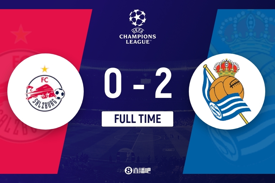 全场比赛结束,萨尔茨堡红牛主场0-2皇家社会。