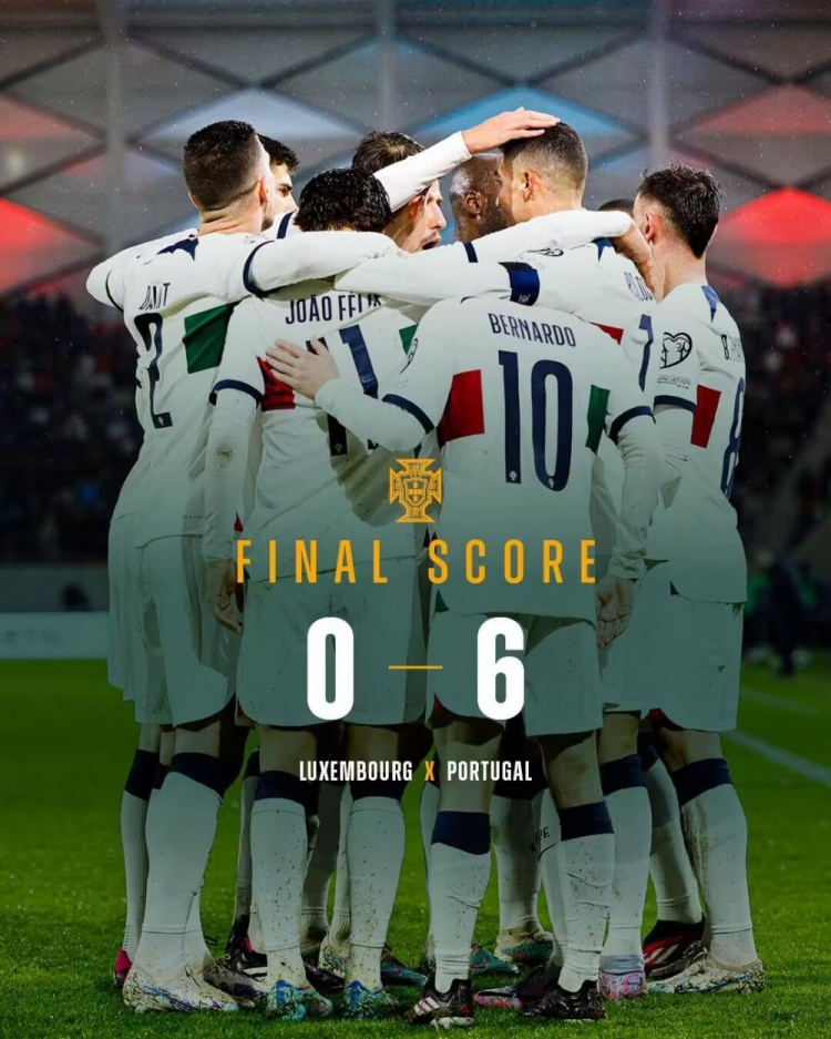 3月27日讯 北京时间3月27日凌晨2点45,欧洲杯预选赛J组次轮,葡萄牙客场挑战卢森堡。上半场C罗双响,菲利克斯破门B席传射。下半场奥塔维奥破门,莱奥传射建功+失点。最终全场比赛结束,葡萄牙客场6-0卢森堡取得两连胜。积分榜方面,葡萄牙两战全胜积6分升至榜首,卢森堡积1分仍居第五。