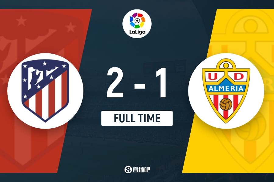 全场比赛结束,马竞2-1击败阿尔梅里亚。