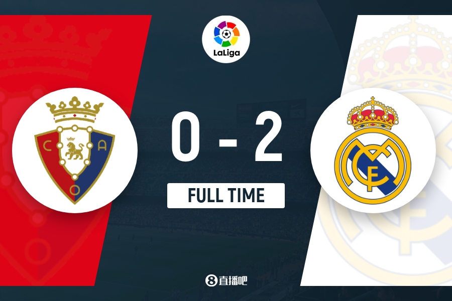 全场比赛结束,皇马2-0奥萨苏纳。