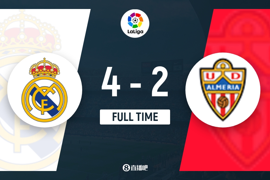 下半场补时4分钟,皇马4-2阿尔梅里亚。
