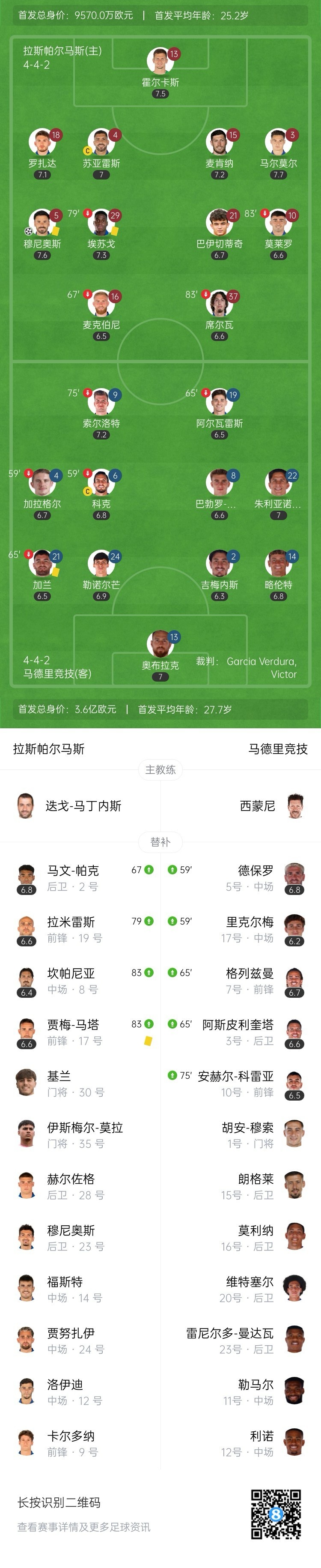 全场比赛结束,马竞0-1拉斯帕尔马斯。