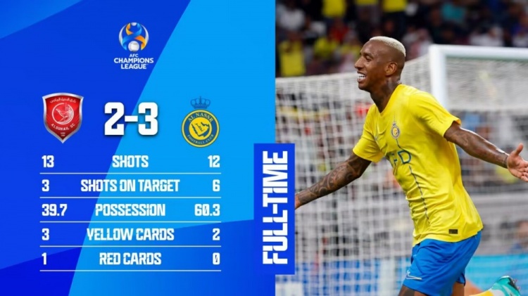 下半场补时8分钟,最终,杜海勒2-3利雅得胜利、