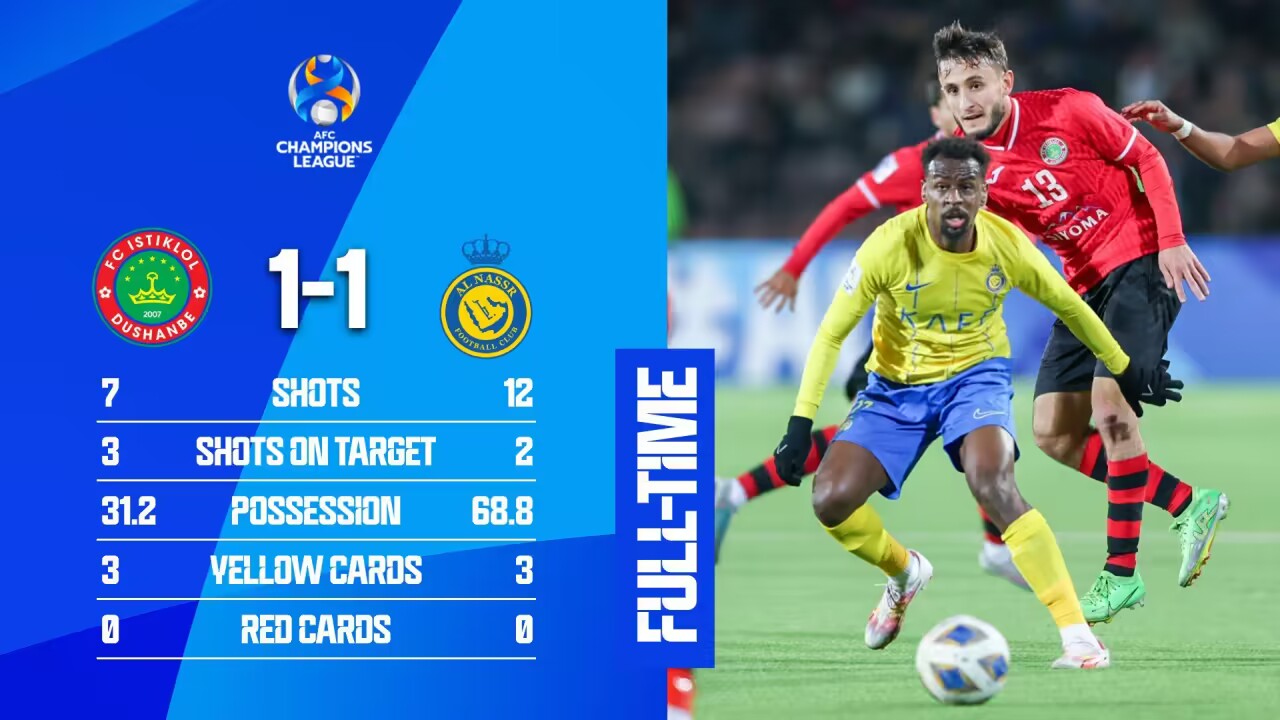 12月6日讯北京时间12月6日凌晨0点,亚冠小组赛E组第6轮,利雅得胜利客场对阵杜尚别独立。上半场,德萨利洛夫世界波破门为杜尚别独立取得领先,半场战罢,利雅得胜利暂0-1杜尚别独立;下半场,加里卜补射破门扳平比分。全场比赛结束,利雅得胜利1-1杜尚别独立,利雅得胜利小组赛4胜2平不败晋级!