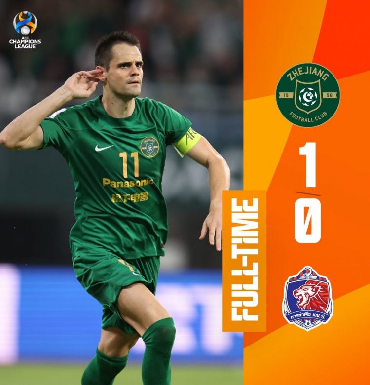 8月22日讯 北京时间8月22日19:35,亚冠附加赛浙江对阵泰港的比赛,上半场莱昂纳多造险穆谢奎屡失良机,半场结束,浙江0-0泰港。下半场弗兰克兜射破门,最终浙江1-0泰港时隔十二年再次晋级亚冠正赛。