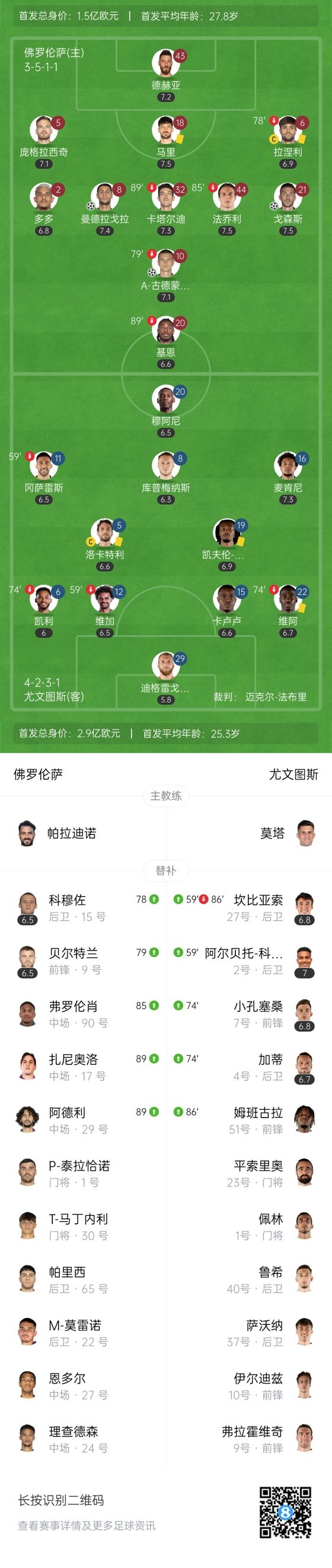 双方首发以及换人信息: