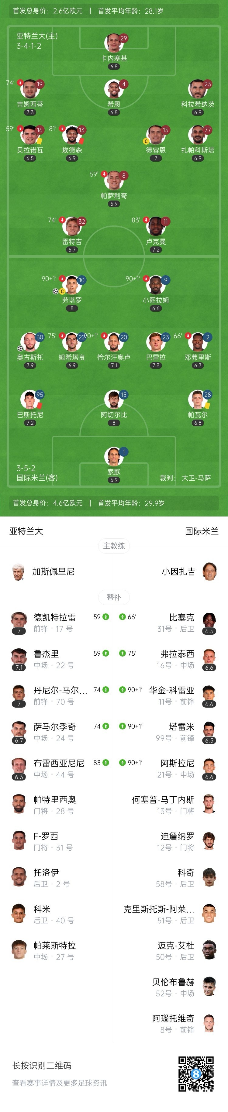 第87分钟,巴雷拉禁区右肋送出斜塞,劳塔罗得球后小角度抽射破门,2-0!与此同时,亚特兰大主帅加斯佩里尼在劳塔罗进球后对主裁判出言不逊被红牌罚下!↓