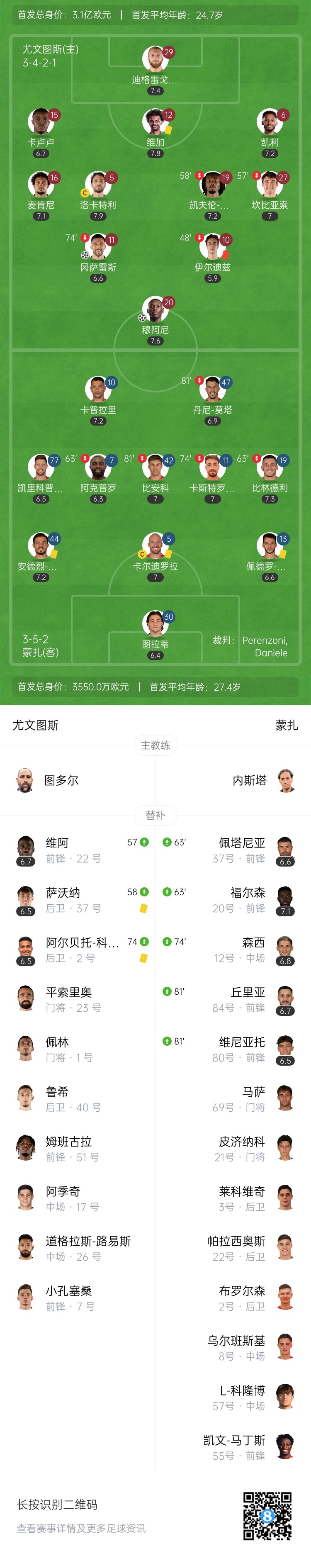 4月28日讯 北京时间0:00,意甲第34轮尤文图斯vs蒙扎,比赛在安联竞技场打响!上半场,冈萨雷斯破门;随后穆阿尼扩大了领先优势!半场结束前,伊尔迪兹肘击染红!下半场,10人作战的尤文守住了两球的优势!最终,尤文2-0击败蒙扎,先赛暂时超越博洛尼亚,升至意甲第4!下轮,尤文将与博洛尼亚展开直接对话!
