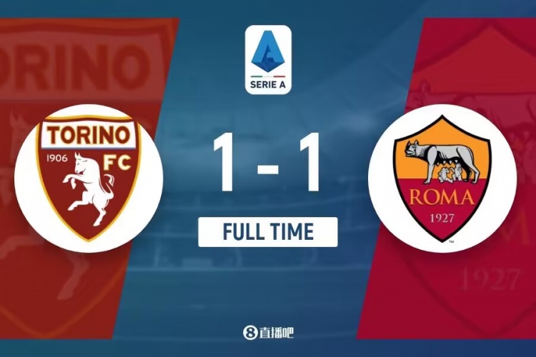 下半场补时5分钟。最终全场比赛结束,罗马1-1都灵。