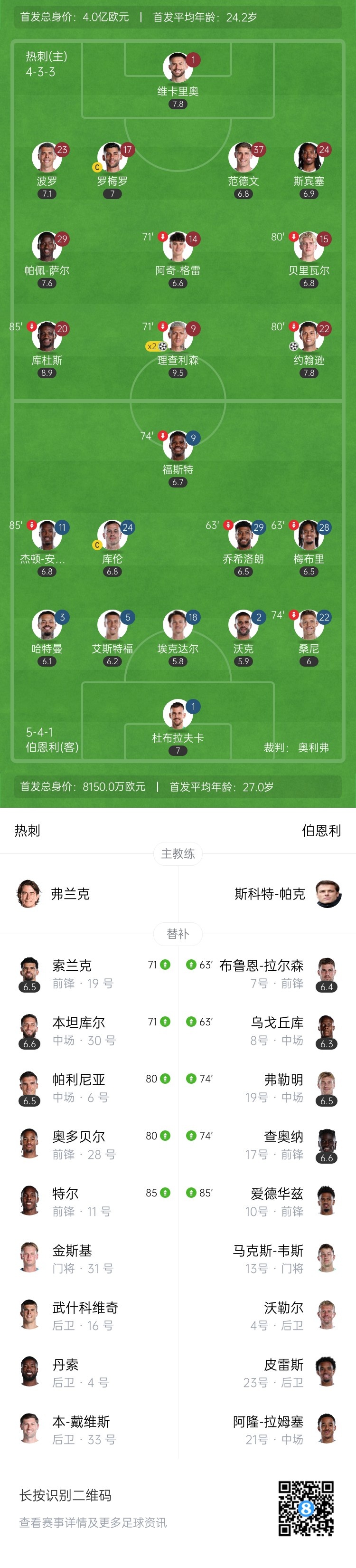 第49分钟,热刺右侧角球机会,范德文高高跃起头球攻门,稍稍高出球门↓