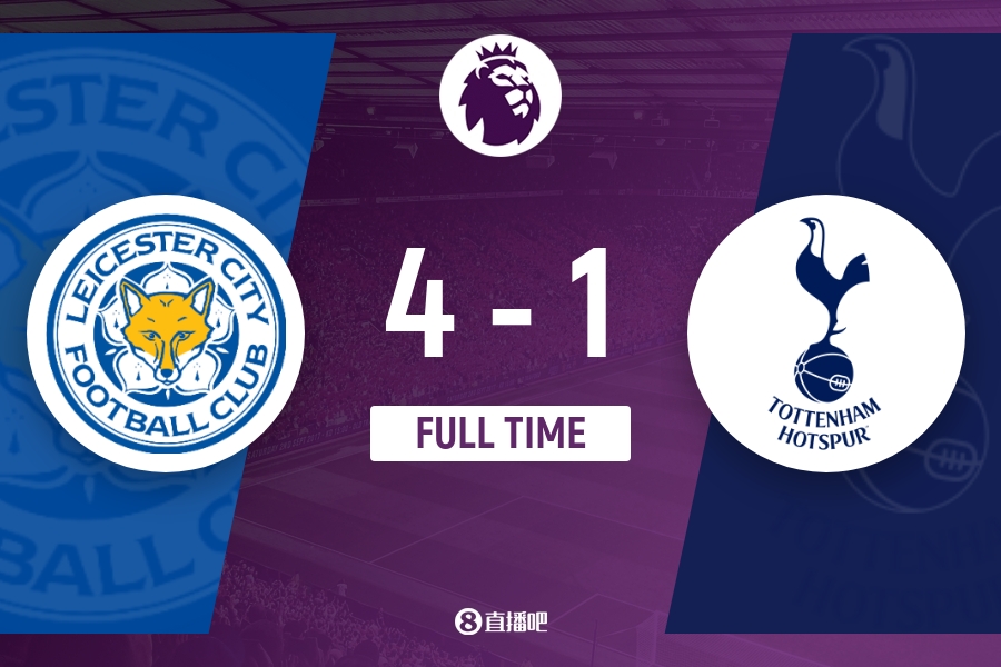 全场比赛结束,热刺1-4莱斯特城。