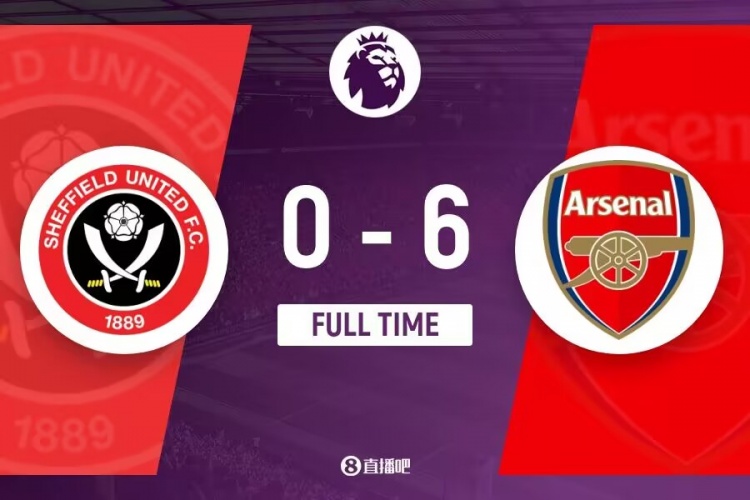 下半场伤停补时5分钟,全场比赛结束,最终阿森纳6-0谢菲尔德联队。