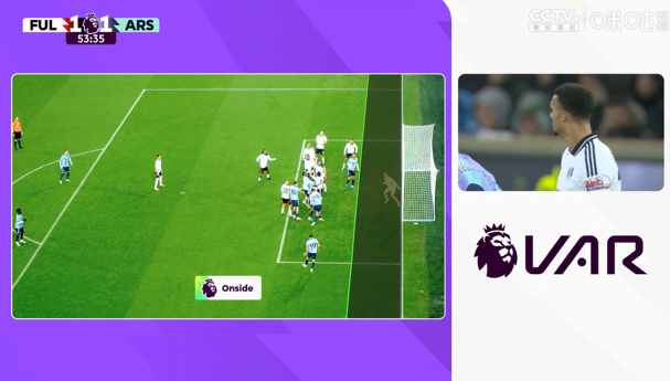 第52分钟,阿森纳通过角球机会扳平比分,赖斯将球开向禁区,后点哈弗茨头球摆渡到门前,萨利巴垫射将球打进,VAR介入,萨利巴并未越位,进球有效,阿森纳1-1富勒姆。↓