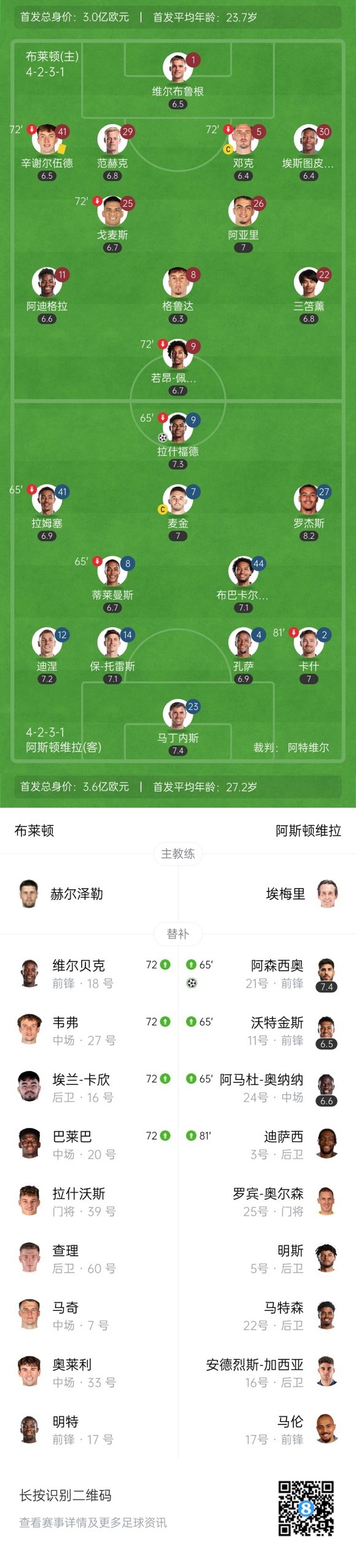 第41分钟,布莱顿前场定位球机会,阿亚里直接打门打在立柱上弹出反弹到拉姆塞手上裁判没有表示。↓